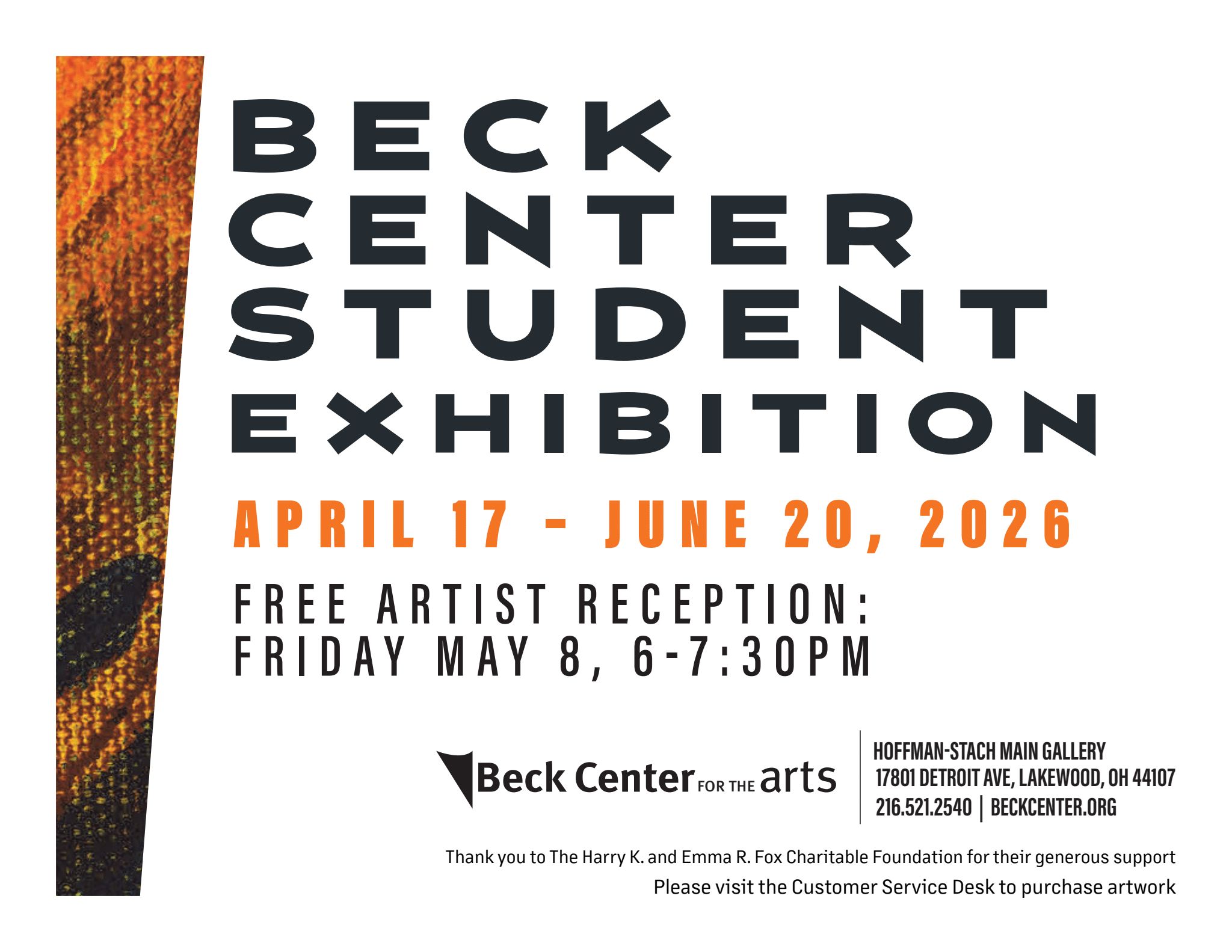 Our annual Beck Center Student Exhibition is the culminating event for the visual art & creative arts therapies programs, and has been a highlight for many years. In this exhibition, we proudly feature our students of all ages and skill levels. This exhibition offers over 100 pieces of art in all media. FREE event